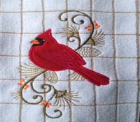 While there is always a selection of premade items, custom items can be made with monograms and names, and from an extensive collection of designs: holidays, seasons, pets, children, hobbies, cowboys & cowgirls, fantasy, sea life, etc. Many items can include appliqué embellishments.